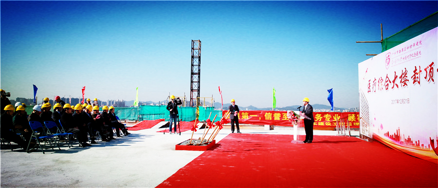 12月21日上午,陽光燦爛,番禺區何賢紀念醫院(區婦幼保健院)迎來了激動人心的歷史時刻——醫療綜合大樓順利封頂。區委常委、區政府黨組副書記崔學軍,區政府辦調研員何俊聲、市橋街道辦事處副主任陳杏甜、區住建局副局長黎校、區基建辦副主任鄭瑞峰,區衛計局邊葉兵局長、李潔蓉副局長、梁翠明調研員及何賢紀念醫院、監理單位、施工單位等相關部門領導出席了儀式。